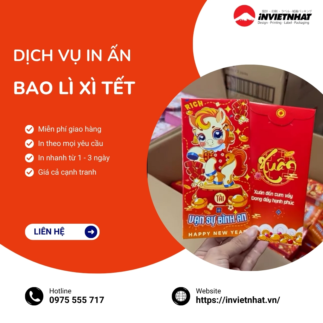 In bao lì xì Tết Bính Ngọ 2026 theo yêu cầu MẪU ĐẸP giá rẻ TPHCM